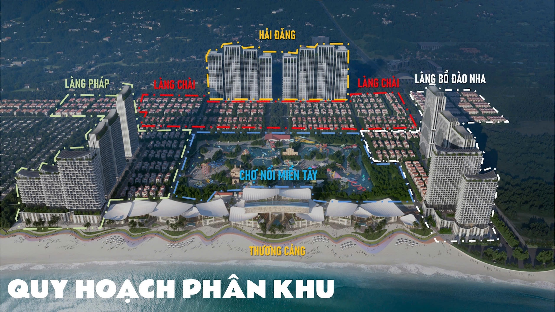 - Làng chài: khu nhà ở thấp tầng với nhiều chi tiết thiết kế được lấy cảm hứng từ làng chài Vũng Tàu xưa.